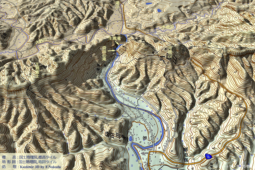 | 地形の三次元イメージ : 袋田の滝 |