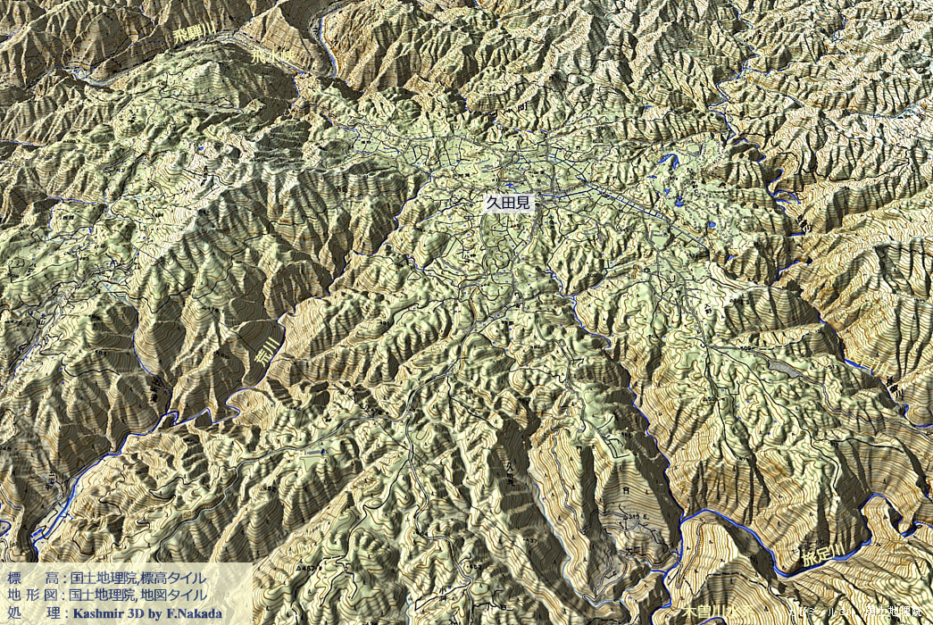 | 地形(標高段彩図)の三次元イメージ : 久田見高原 |