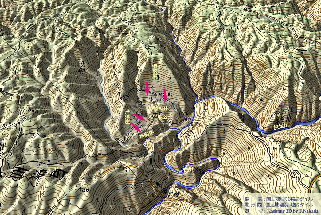 | 地形の三次元イメージ : 大平地区の地すべり地形 |