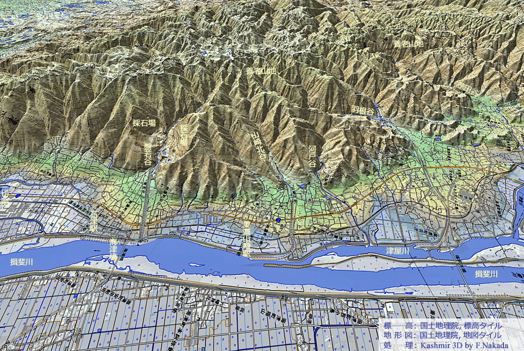 | 地形の三次元イメージ : 山崎北谷の扇状地 |