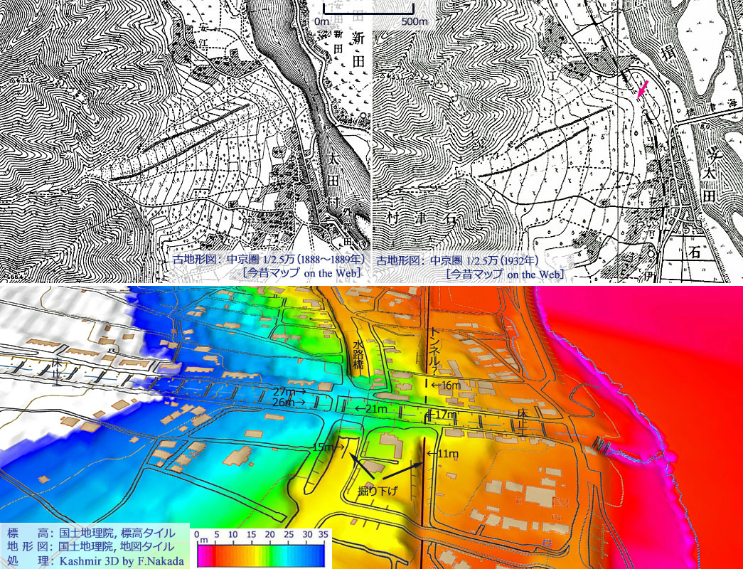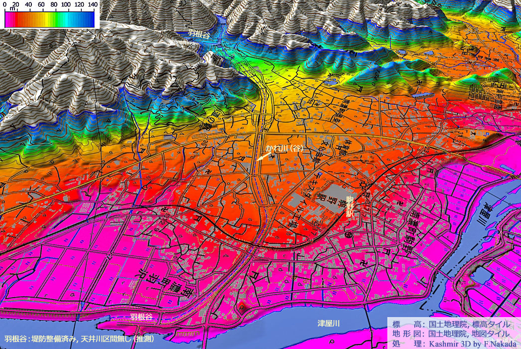 | 地形の三次元イメージ : 盤若谷の天井川区間 |