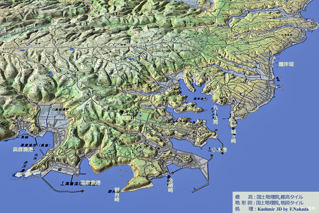 | 地形と地質の三次元イメージ : 九十九湾及び周辺部 |