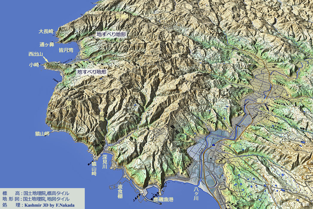 | 地形と地質の三次元イメージ : 猿山岬を含む輪島市門前町一帯 |