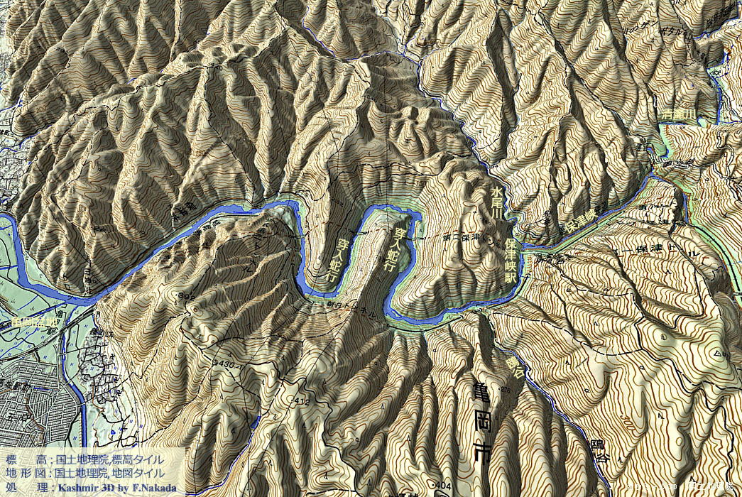 | 地形の三次元イメージ : 保津峡(保津川峡谷) |