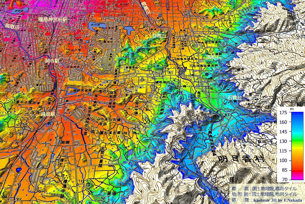 | 地形と地質の三次元イメージ : 明日香村一帯 |