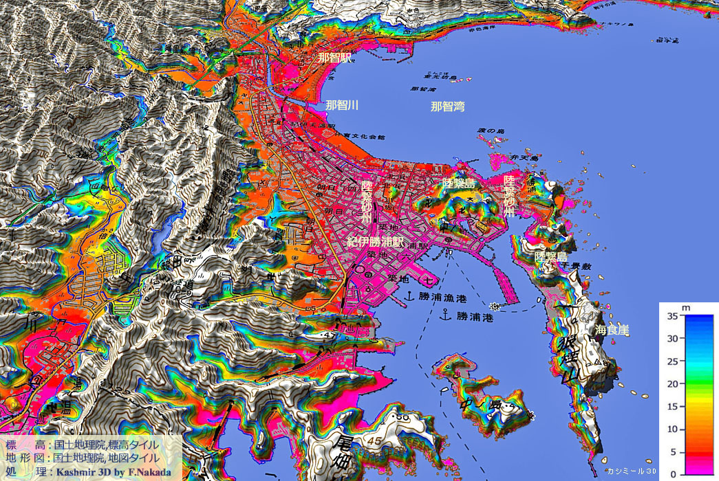 | 地形の三次元イメージ : 紀伊勝浦(陸繋砂州) |