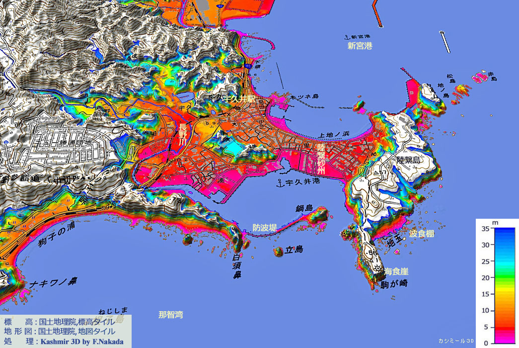 | 地形の三次元イメージ : 宇久井港(陸繋砂州) |