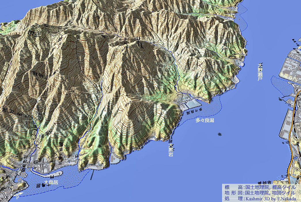 | 地形の三次元イメージ : 大鳥居干潟(仮称),多々良潟など |
