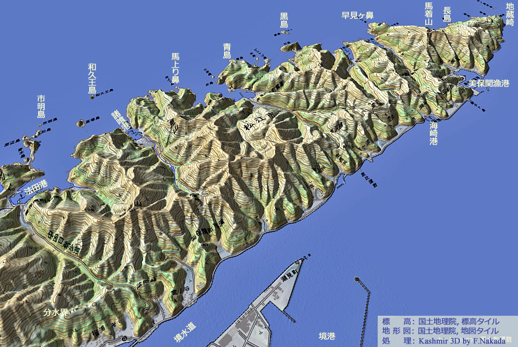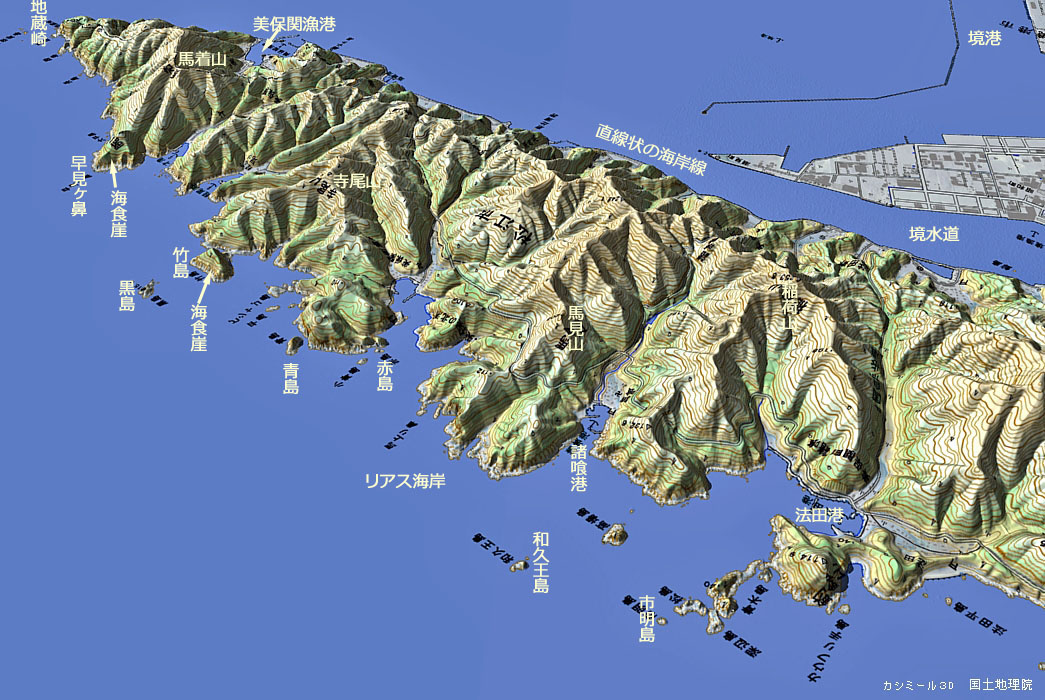 | 地形の三次元イメージ : 七類湾~馬上り鼻 |