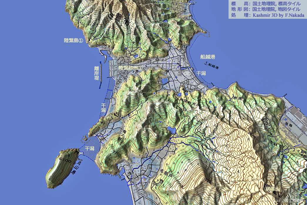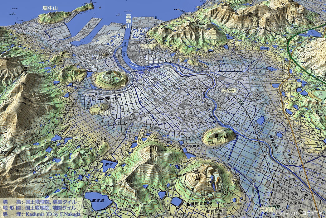 | 【参考】地形の三次元イメージ : 高瀬川河口域に点在する陸繋島群 |