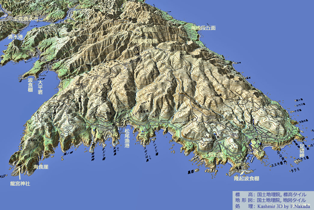 | 地形と地質の三次元イメージ : 足摺半島と足摺岬 |