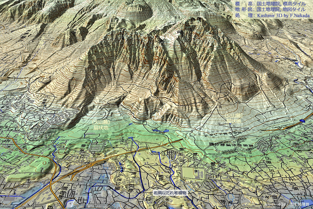 | 地形の三次元イメージ : 眉山の東山麓 |