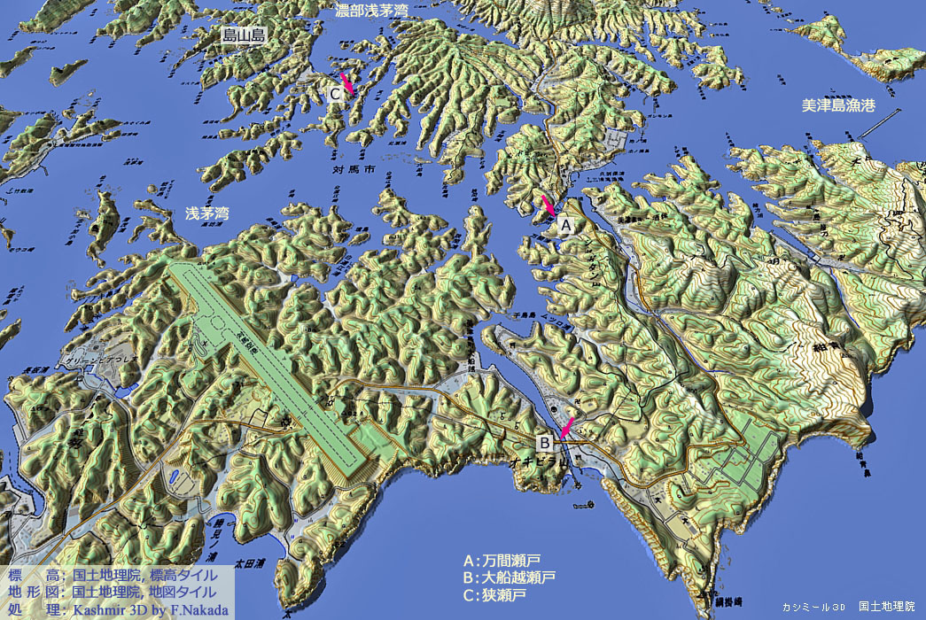| 地形の三次元イメージ : 浅茅湾(あそうわん)北部 |