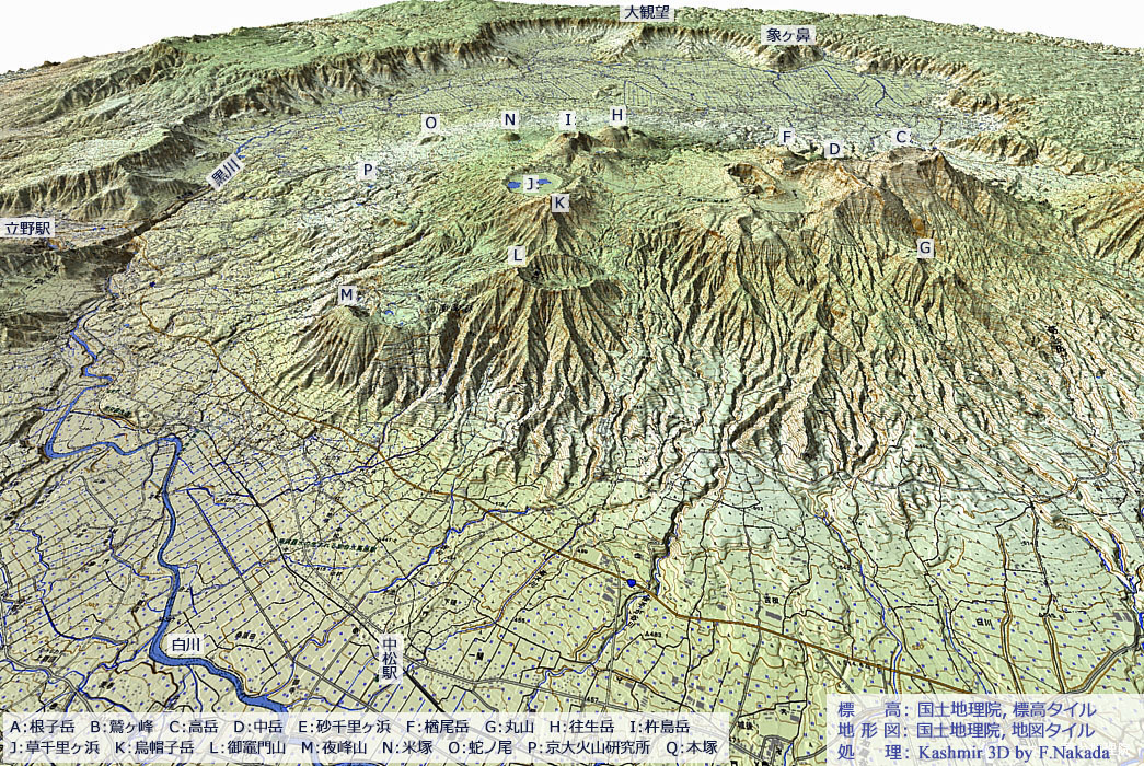 | 地形と地質の三次元イメージ : 阿蘇火山 |