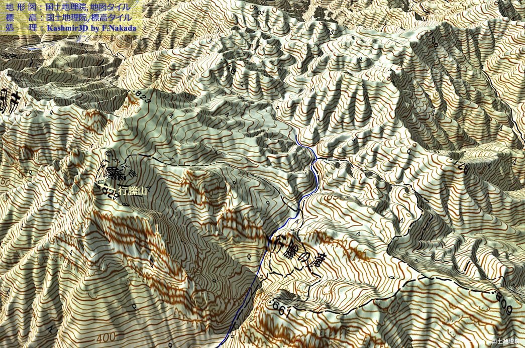 | 地形の三次元イメージ : 行縢山と背後の台地状地形 |