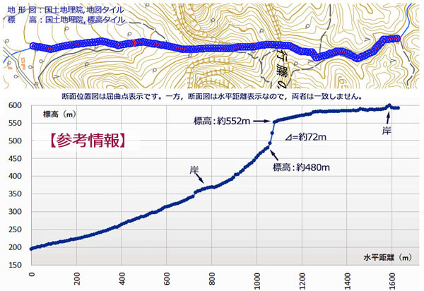 | 5mDEMによる河床縦断図(概略)・記事 | |