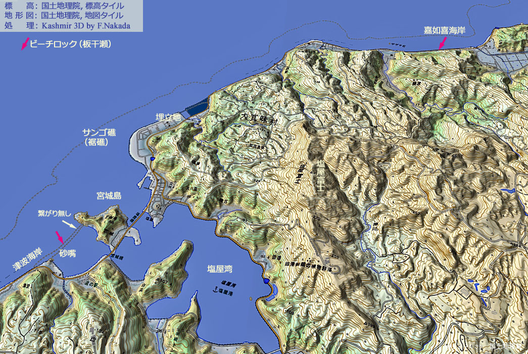 | 地形の三次元イメージ : 大宜味村,津波海岸 |