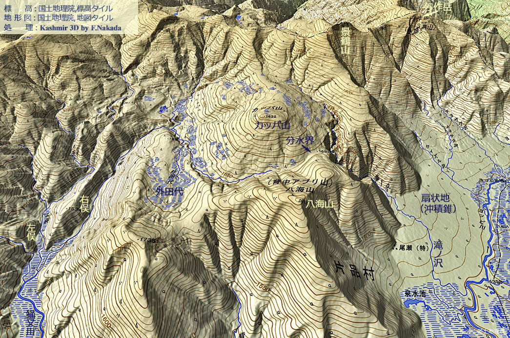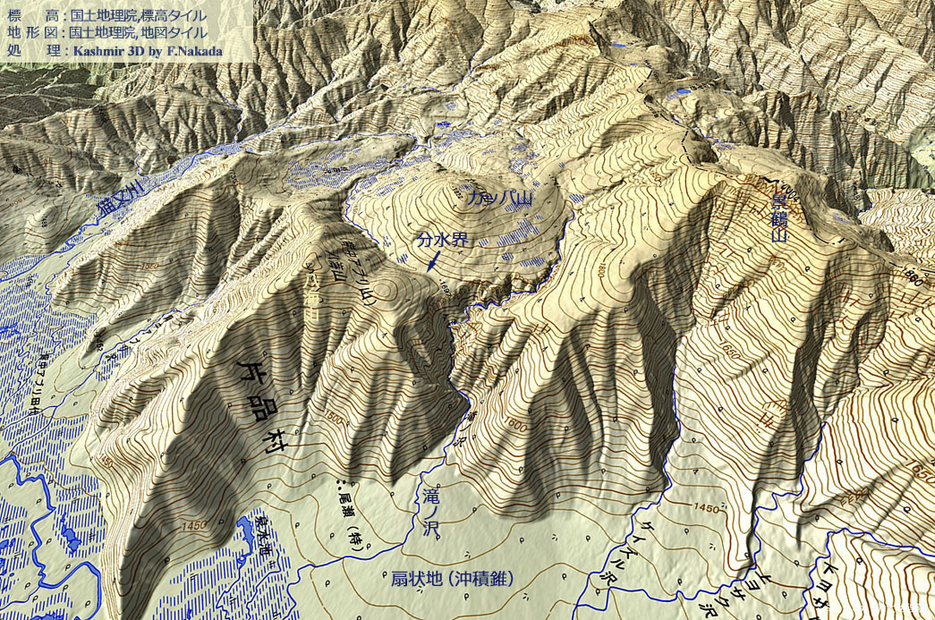 | 地形の三次元イメージ : カッパ山と扇状地 |
