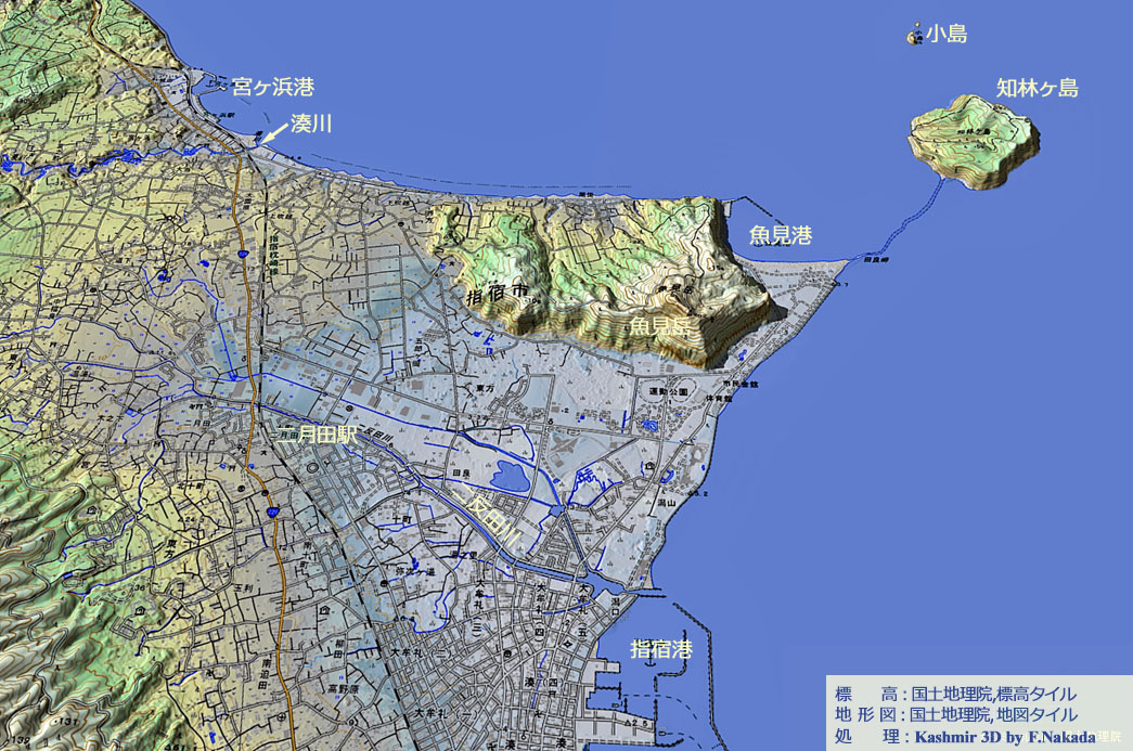 | 地形の三次元イメージ : 陸繋砂州と陸繋島 |