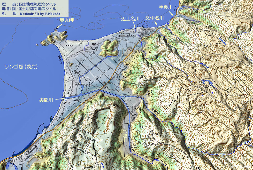 ![]() これは想像ですが,「陸繋砂州」として分類されているところの起源は,「砂嘴」あるいは「砂州」ではなく, 「奥間川」などが運んできた土砂が,谷の出口の浅い「サンゴ礁」を直接埋めてできた「扇状地状三角州」ではないでしょうか。 辺土名地区には,小さな河川が複数存在するので,こちらでも同様のことが発生した結果,規模の大きな「複合三角州」ができたように思います。 なお,陸繋島近くでは,沿岸流で運ばれてきた砂なども堆積して「砂州」となったこともあり得ることでしょう。 |