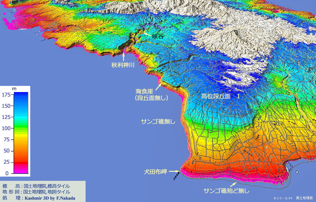 ![]() 「徳之島」の西海岸には「サンゴ礁」がありません。 「海成段丘面」も高位面を除くと,殆ど発達していません。 サンゴ礁が生育できないほど水深が深く,荒波が直接打ちつけるので,段丘ができるどころか削られてしまったのです。 |