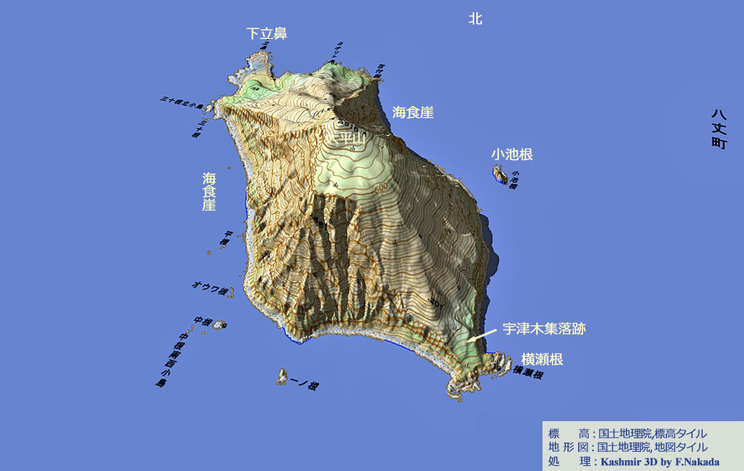 | 案内用三次元イメージ : 八丈小島と八丈島 |