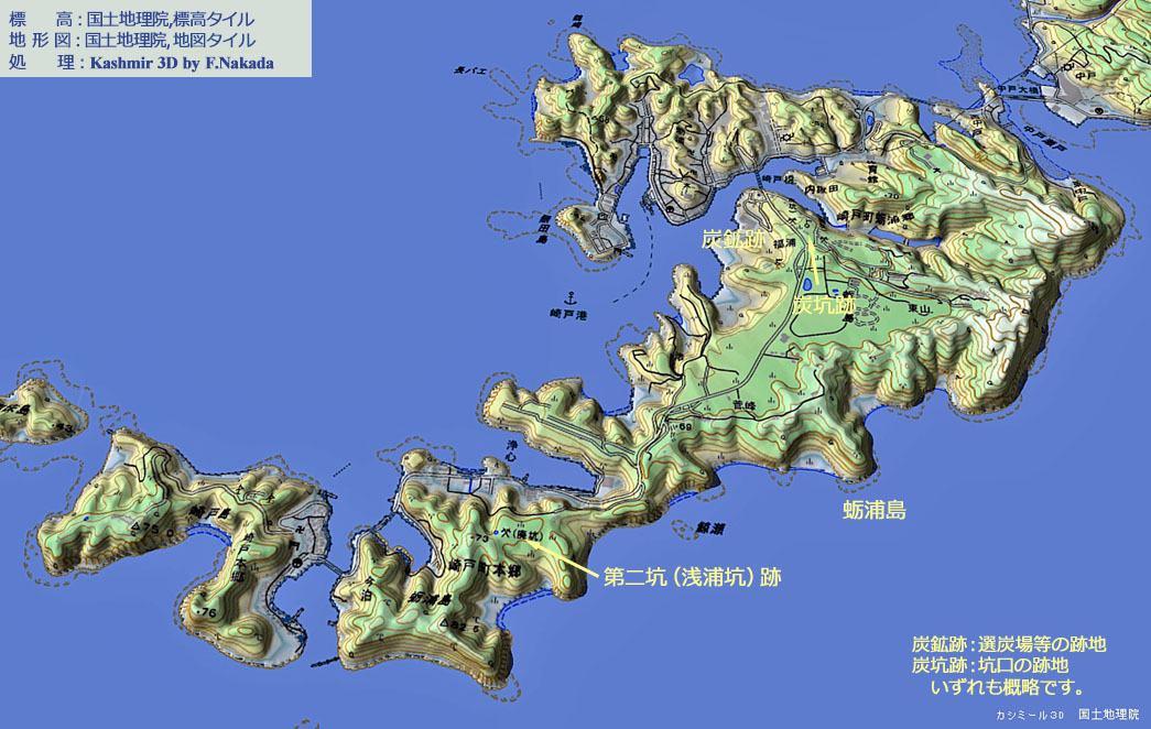 | 地形の三次元イメージ : 蛎浦島(崎戸炭鉱) |
