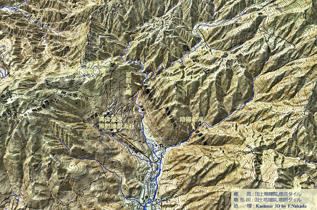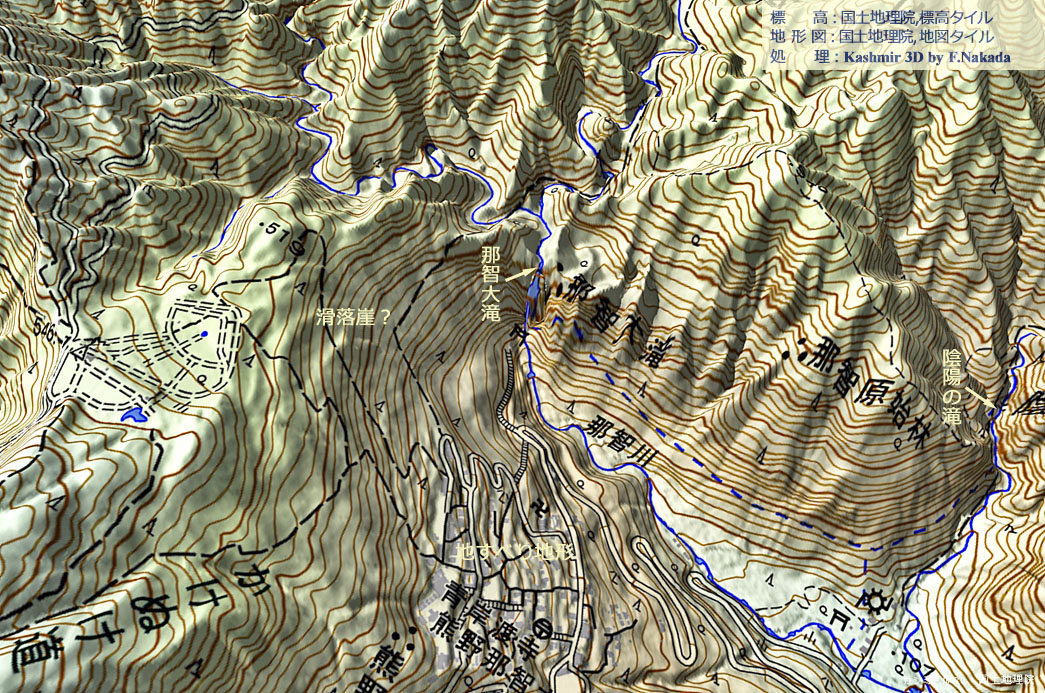 | 地形の三次元イメージ : 那智大滝の標高データが疑問 |