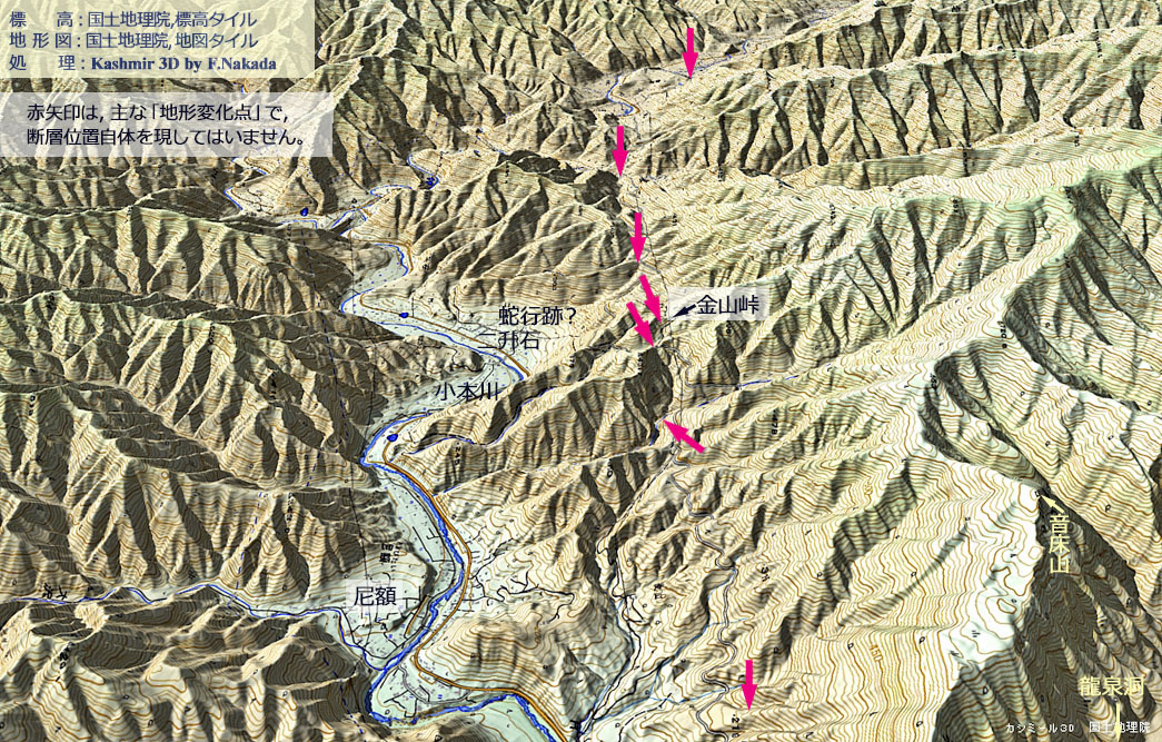 | 岩手県:岩泉町,金山峠の断層地形 |