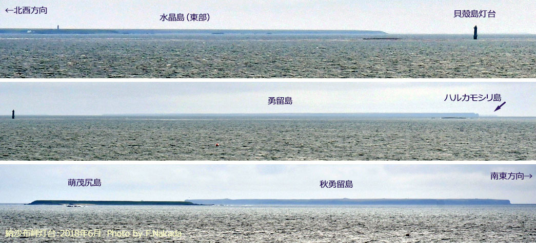 ![]() 「歯舞群島」が,いかに真っ平らな土地であるかが,よくわかります。 故障のせいか,何年も点灯しない「貝殻島灯台」の向こうに「志発島」が霞んでいましたが,このサイズでは認識できません。 「勇留島」の右端に「ハルカモシリ島」が霞んでいます。 「萌茂尻島」までの距離は約4km,貝殻島灯台まではわずか2kmです。 |