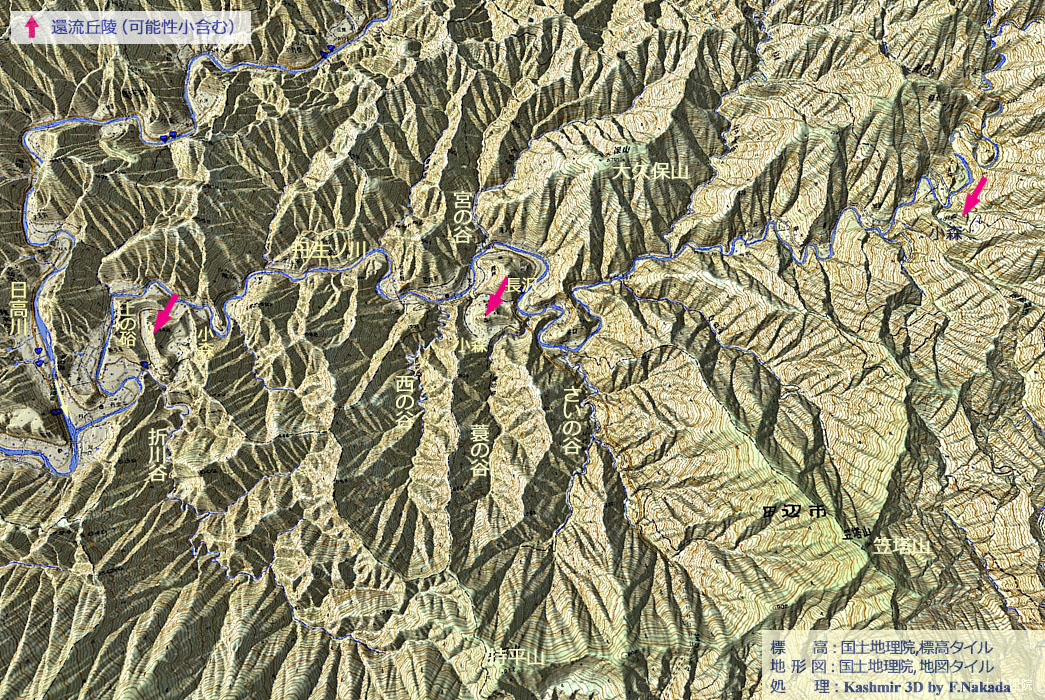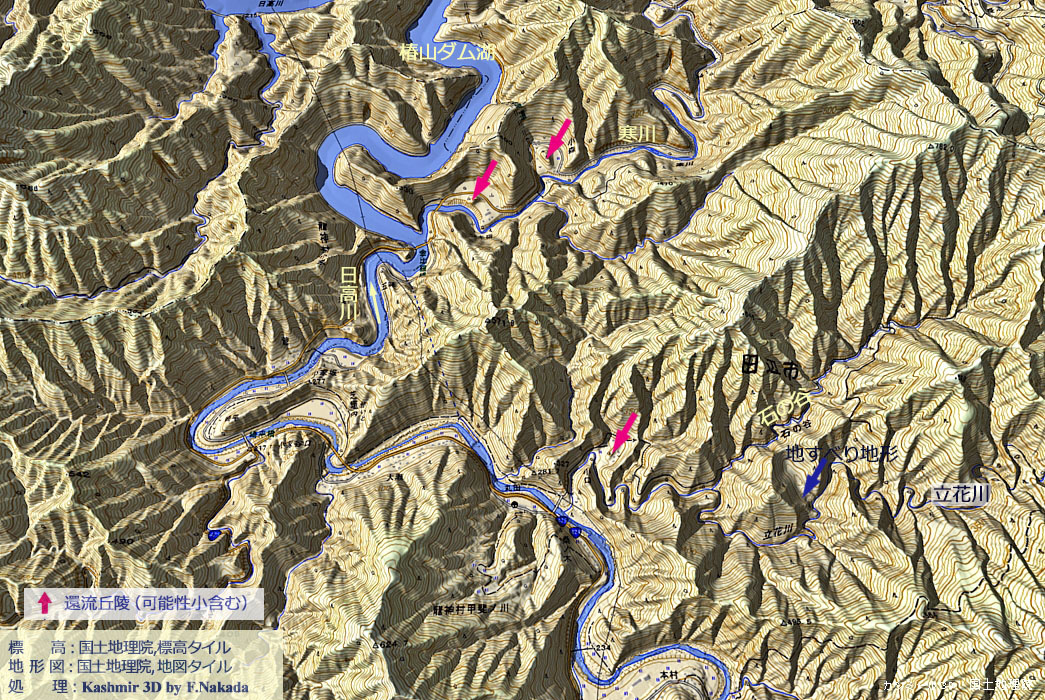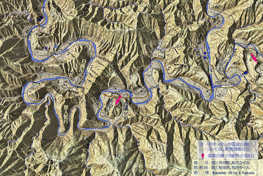 | 和歌山県:日高川水系の環流丘陵群と穿入蛇行群 (丹生ノ川,本流中流部,寒川,立花川,付:河川争奪と地すべり地形) |