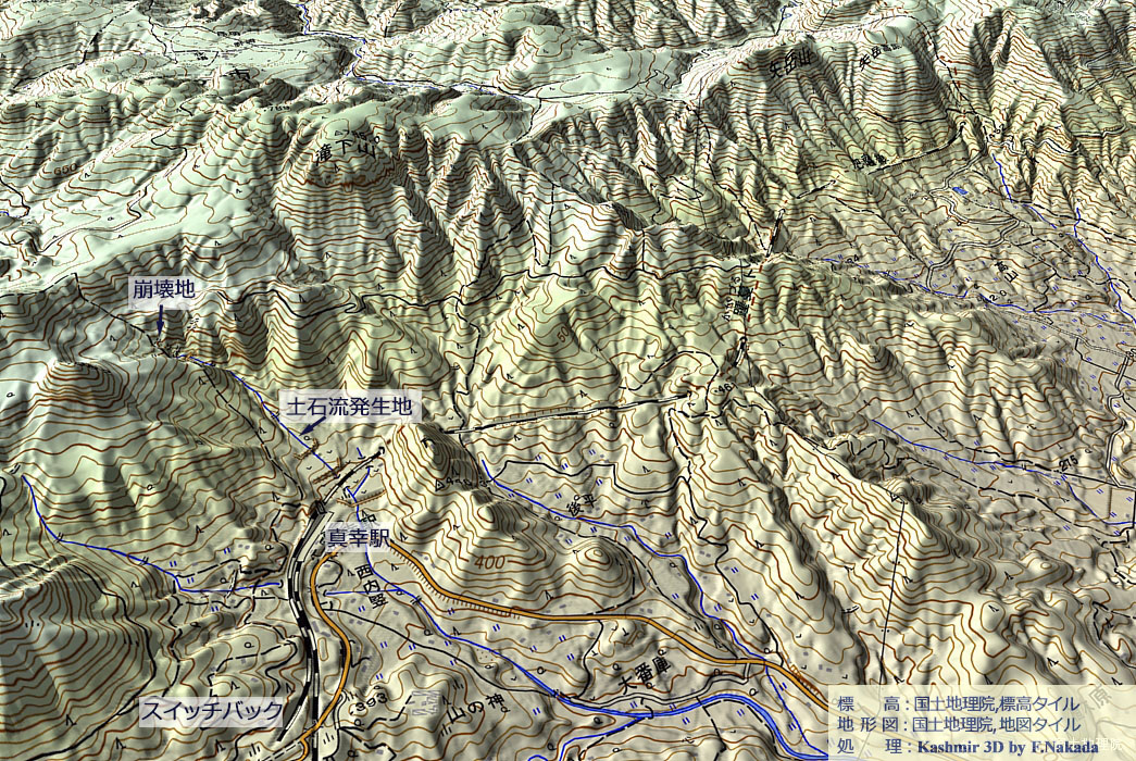 | 標高段彩図の三次元イメージ : |