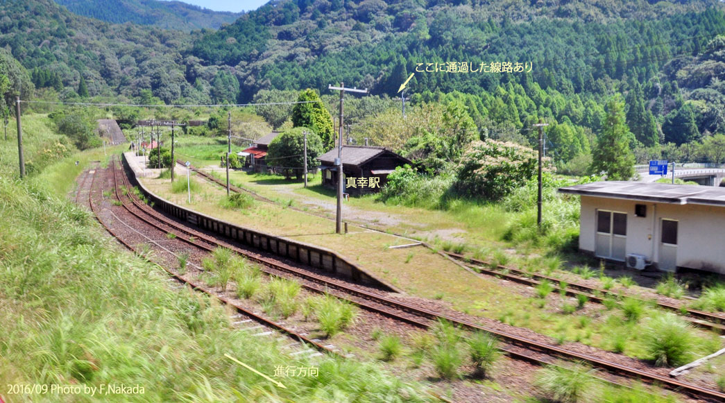 ![]() 乗車した列車は,「熊本駅」発,鹿児島本線~肥薩線経由「吉松駅」行きでした。 「大畑駅」のスイッチバックとループ線を経由し,「矢岳駅」で小休止した後「矢岳トンネル」などを抜けて,「真幸駅」のすぐ上を通過中です。 この駅もスイッチバックなので,間もなく停止し線路を切り替えて,逆方向で駅に進入しました。 |