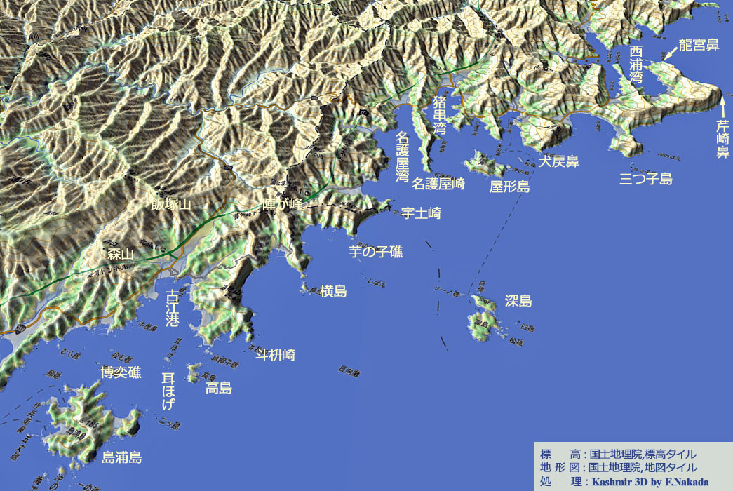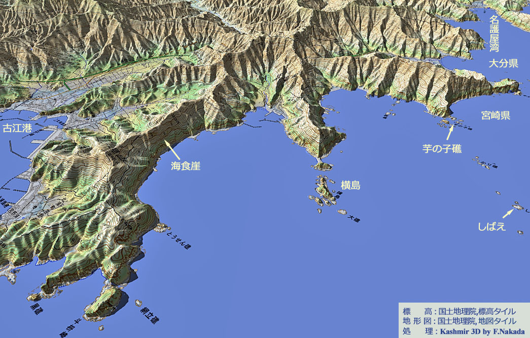 | 地形の三次元イメージ : 日豊海岸(古江港~名護屋湾) |
