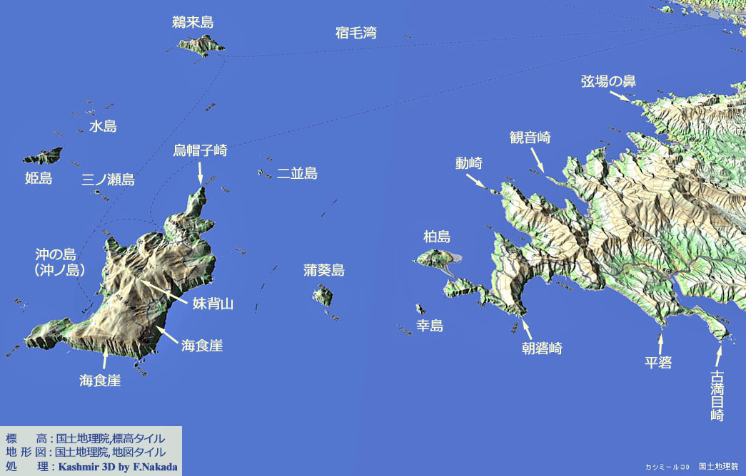 | 地形の三次元イメージ : 沖の島 |