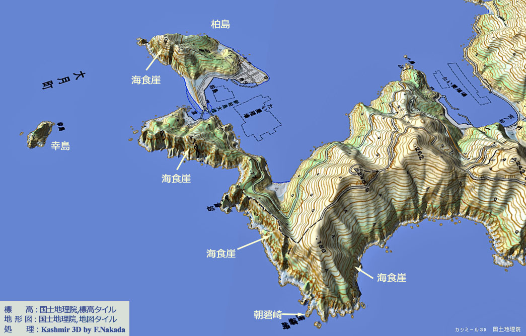 | 地形の三次元イメージ : 朝碆崎付近 |