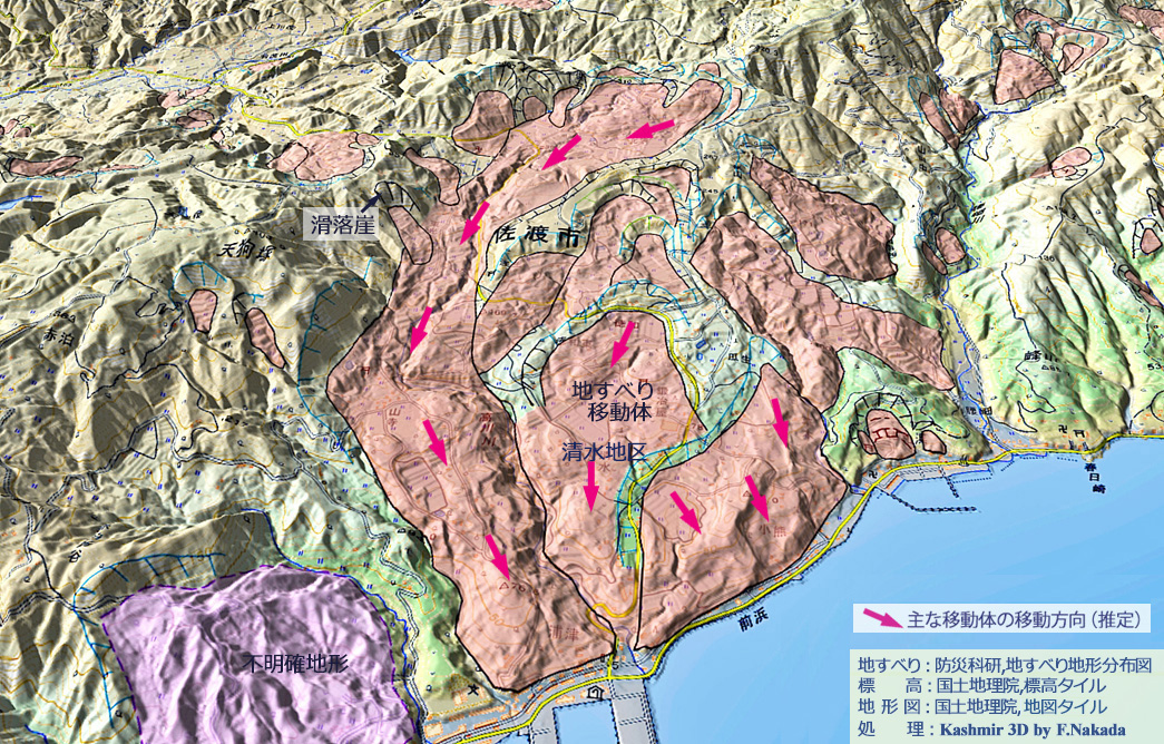 | 地すべり地形分布図の三次元イメージ : |