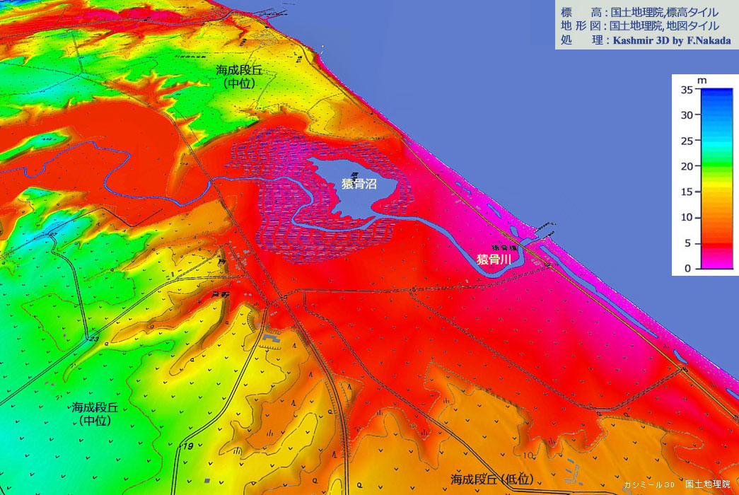 | 標高段彩図の三次元イメージ : 猿骨沼とその周辺 |