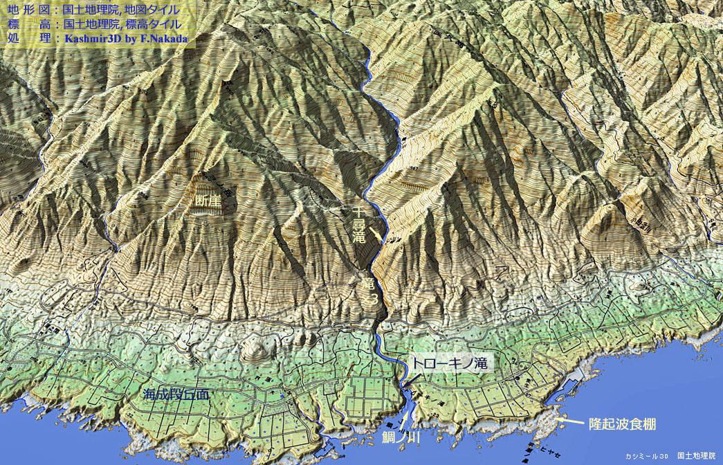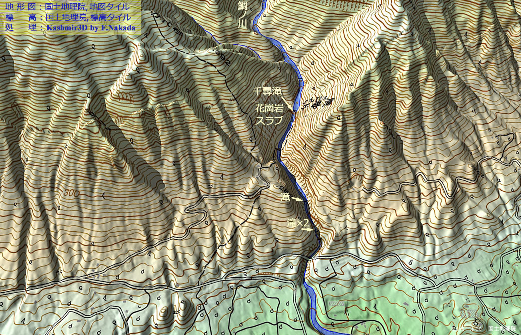 | 地形の三次元イメージ : 鯛ノ川と千尋滝(せんぴろたき) |