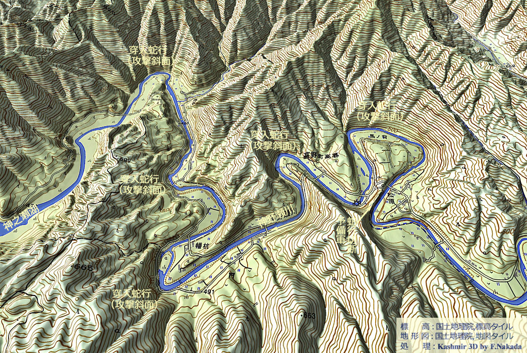 | 地形の三次元イメージ : 連続する穿入蛇行 |