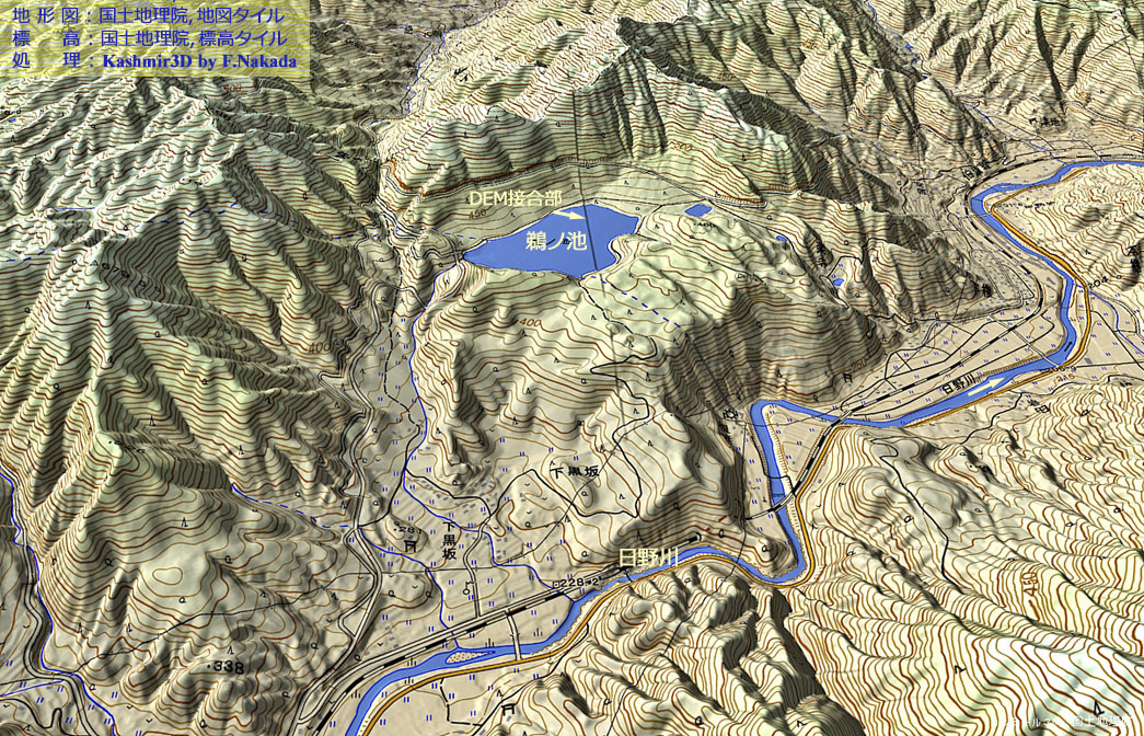 ‼マウスオーバー‼ 地図上にマウスを乗せてください。産総研・地質調査総合センターの「1/20万 シームレス地質図(出典,下記)」を表示します。![]() 日野町にある「鵜ノ池」とその周辺の台地は,以下に示す二通りの解釈が成り立ちます。 ① 「古日野川」の「穿入蛇行」の結果形成された「河成段丘」 ② 後ろの山から巨大なブロックが滑り落ちて堆積した「地すべり移動体」 注 「池」の字の真ん中を走るほぼ垂直の直線は,5mDEMの接合部です。 画像処理で消せますが,等高線も影響を受けるのでそのままにしてあります。 |
