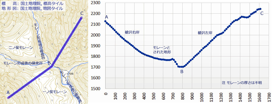 | 【地形断面図・下流側(一ノ俣モレーンとも)】 |