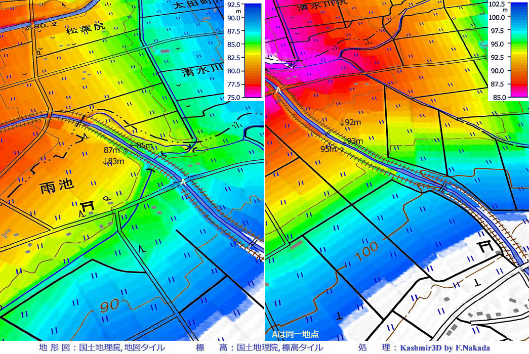 天井川,扇状地,堤防,活断層 |