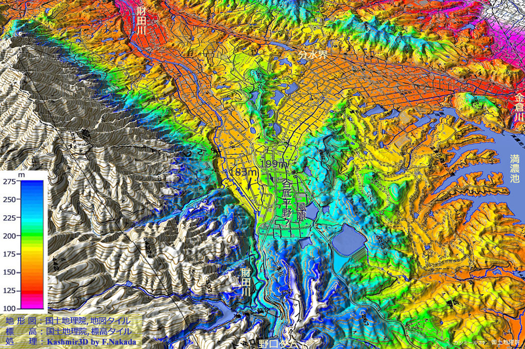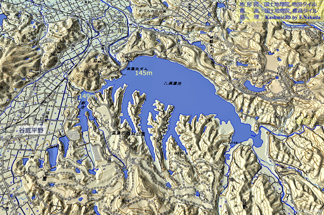 | 香川県:満濃池,金倉川と財田川の河川争奪(想像) |
