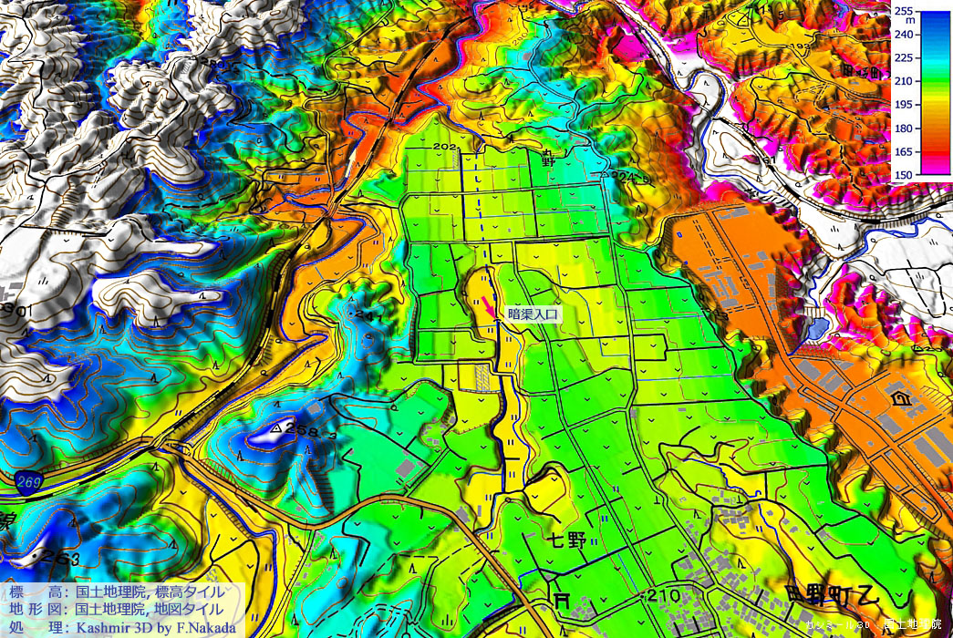 | 地形と地質の三次元イメージ : 田野盆地北西部 |