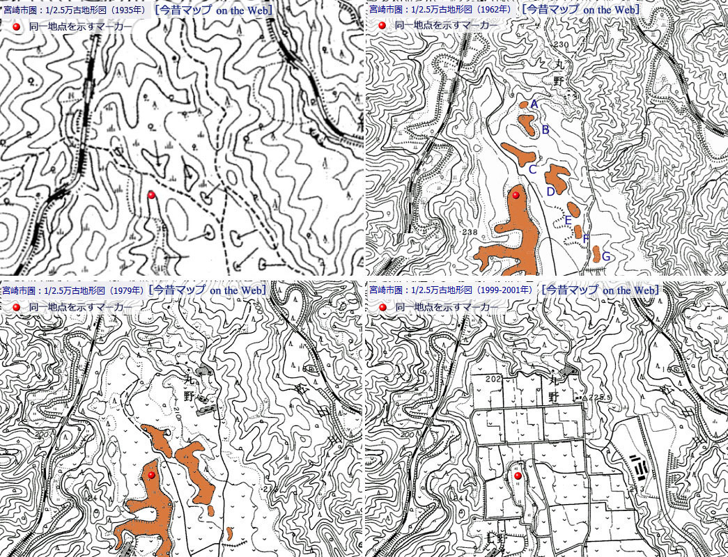 ‼マウスオーバー‼ 地図上にマウスを乗せてください。産総研・地質調査総合センターの「1/20万 シームレス地質図(出典,下記)」を表示します。![]() 「姶良カルデラ」起源の「大規模大火砕流」は,「入戸(いと)火砕流」と呼ばれており,鹿児島県内はもちろん宮崎県の南西部にも堆積しています。 この付近は「田野盆地」と呼ばれていますが,その北西部にも「シラス台地」として現存しています。 シラスのうち,「非溶結部」は水による侵食に弱く,「シラスドリーネ」と呼ばれる「凹地(窪地)」を形成することで知られています。 本図の中央にある三角形の台地は,南側がやや高く河川水は必縦的に北側に流れる傾向にあります。 しかし,清武川からの支流は河床勾配が急なため強大な「下刻侵食力」を示し,深い谷を刻みつつあります。 その深い谷そばの台地の上に,田野町乙という町名の集落が形成されてします。 なお,この台地唯一の集落でもあります。 |