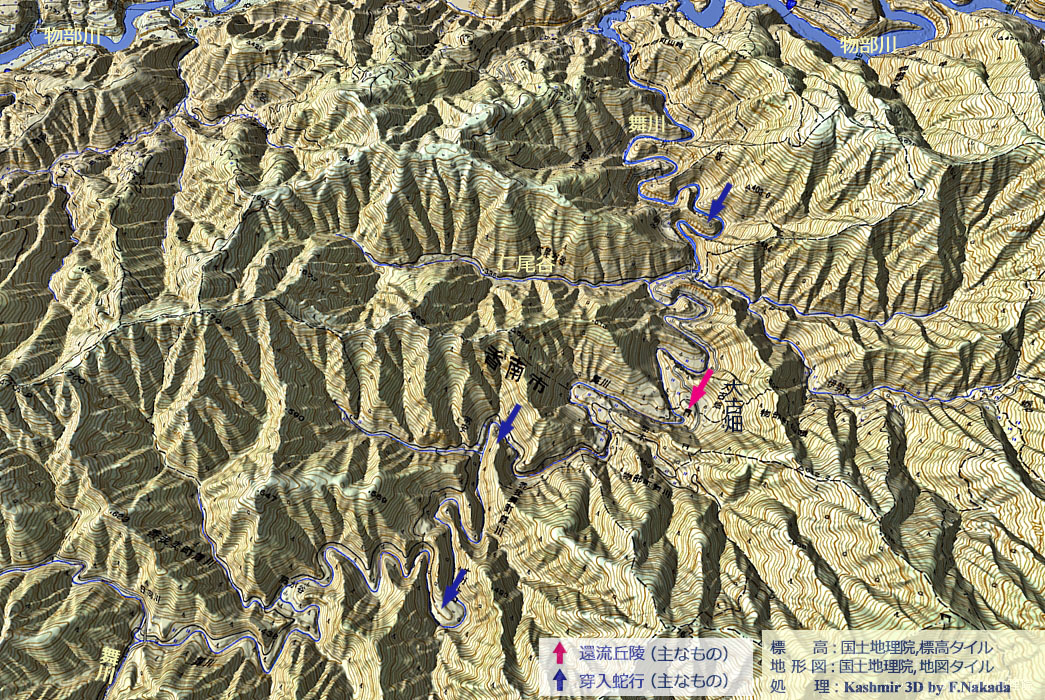 | 地形の三次元イメージ : 舞川の穿入蛇行(核心部) |