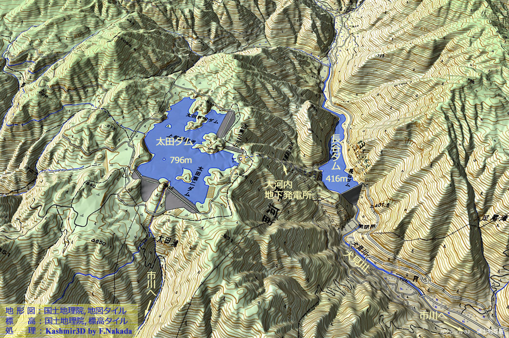 | 地形の三次元イメージ : 大河内(おおかわち)揚水発電所 |