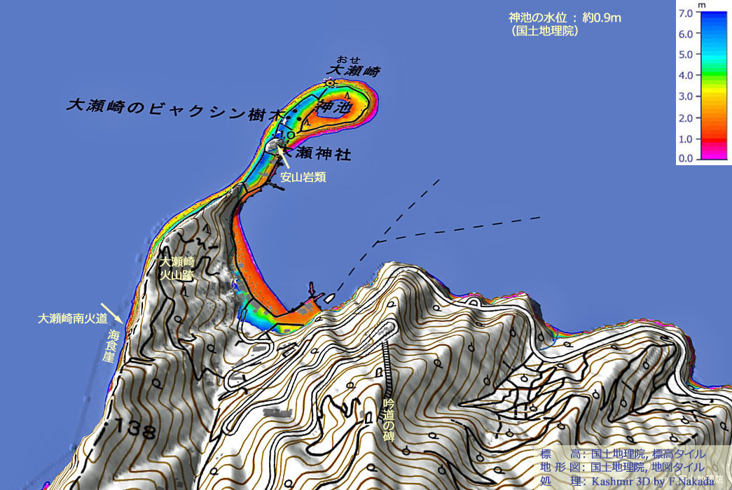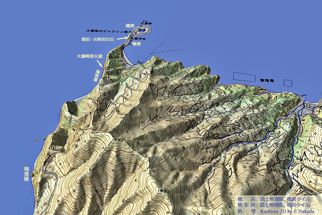 | 標高段彩図の三次元イメージ : 大瀬崎と神池 |