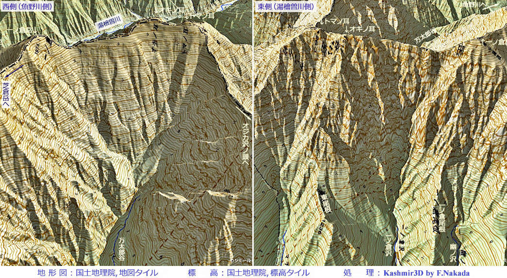 | 【地形断面図】 谷川岳の非対称山稜 | |